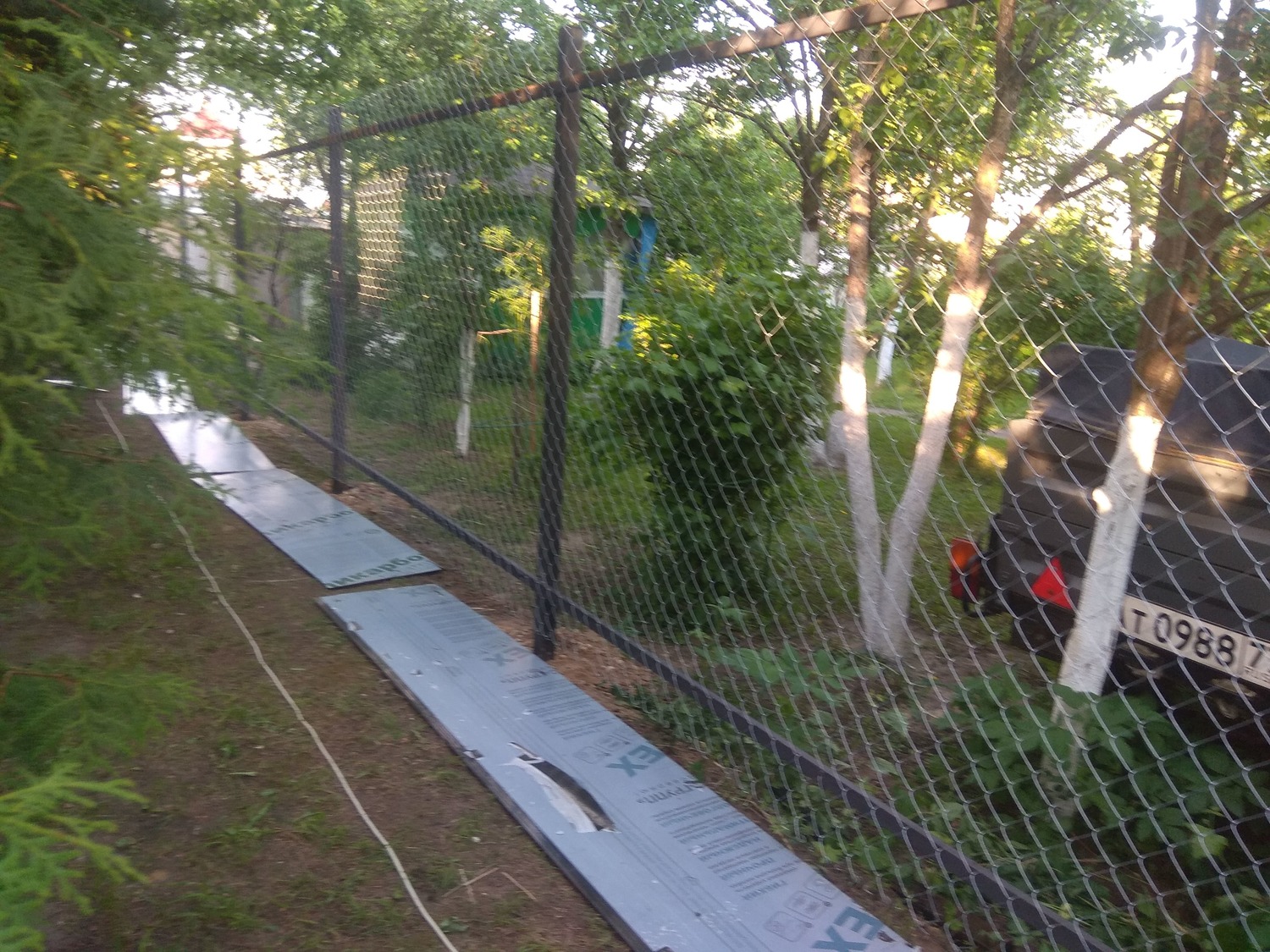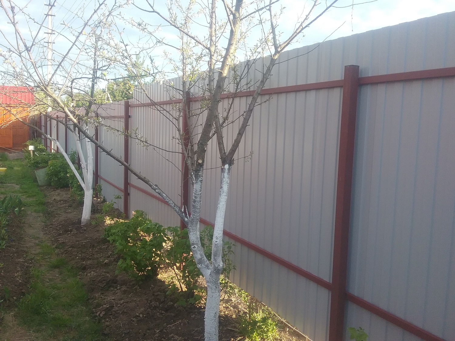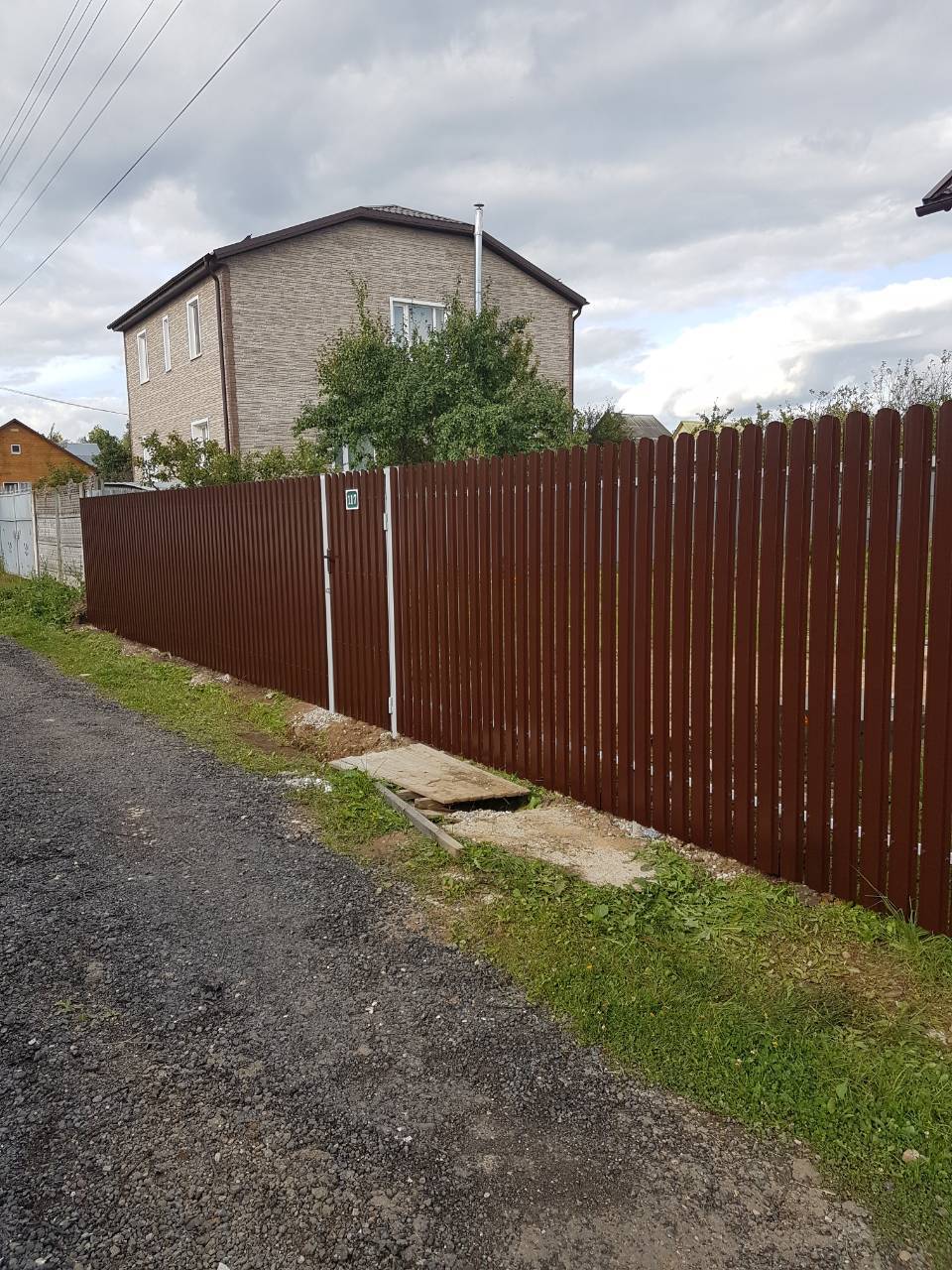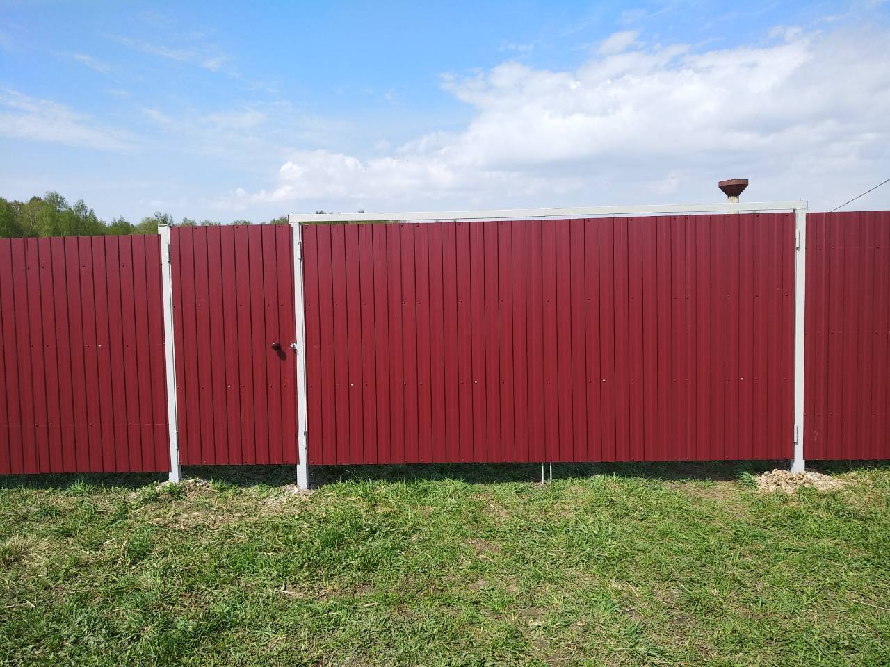 - Материал: Профнастил, металлический штакетник, сетка, проф труба, дерево