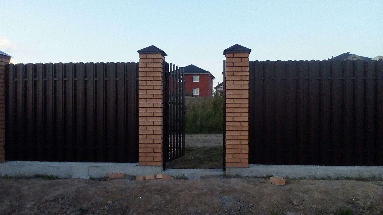 Цены, фото. Вся информация про монолитные заборы с кирпичными столбами.